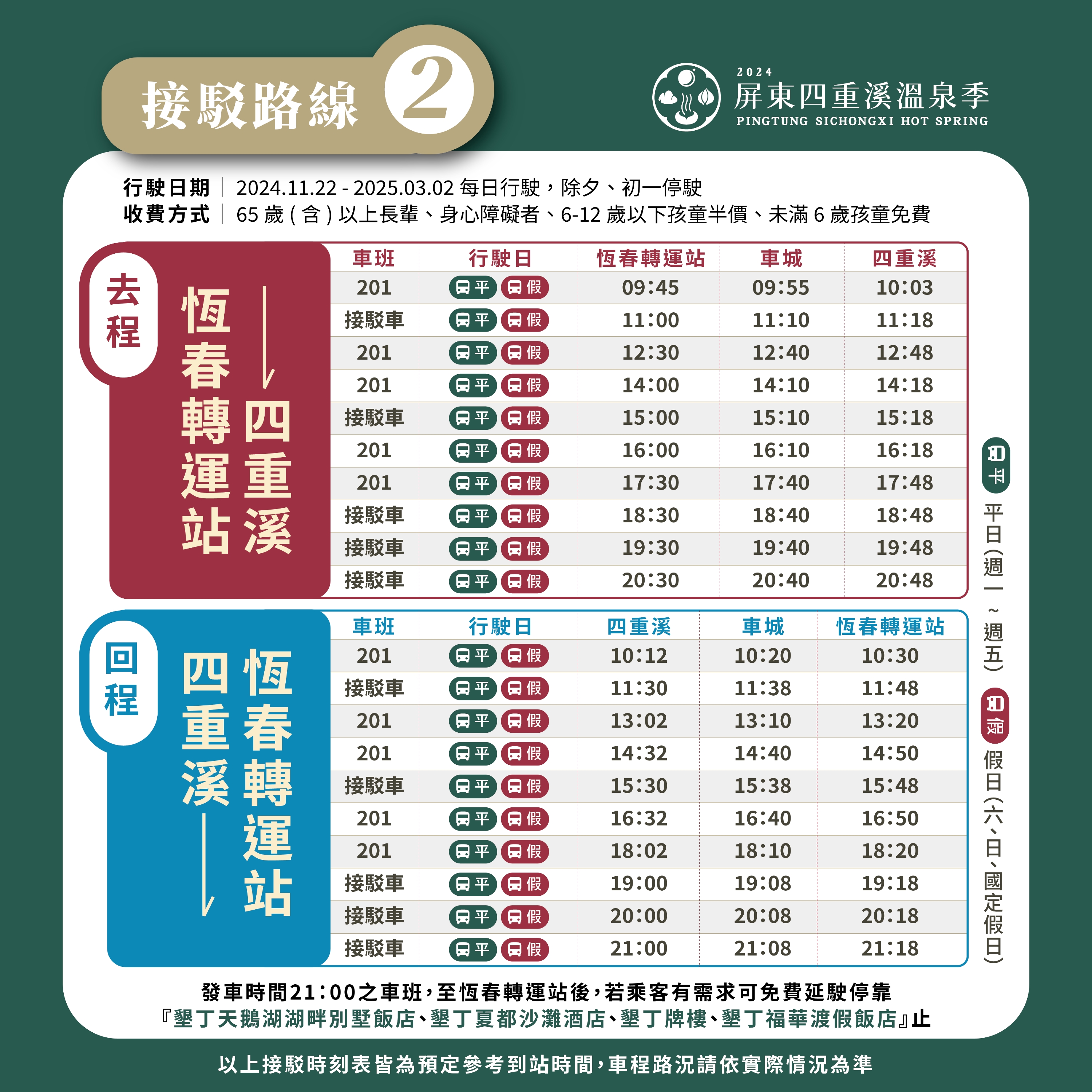 有關票價、收費標準及班次發車時間如有異動,請洽活動官網或屏東客運官網查詢。
