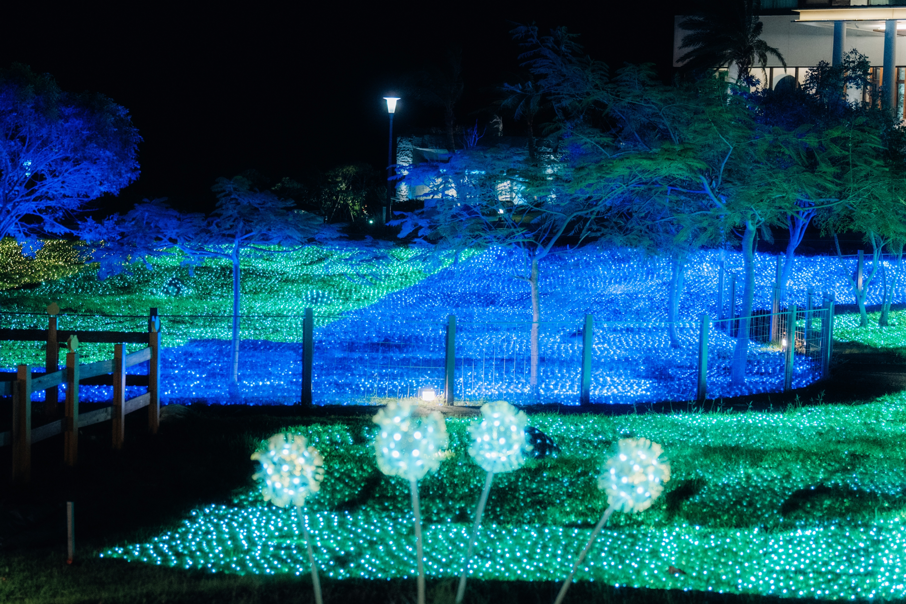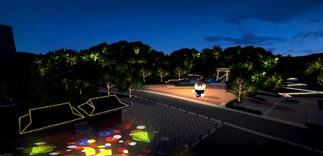 旭海園區在環境中,營造溫泉季光景的重要場景之一。以旭海的環境元素,再造夜間的光亮地景。